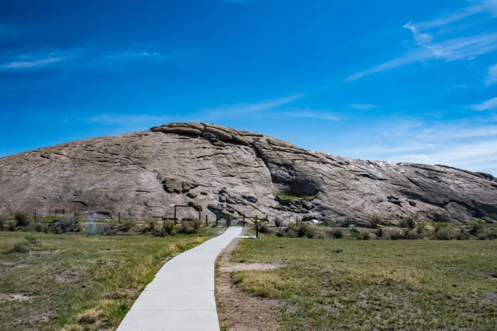 If you want a road trip with actual historical weight to it, following the Oregon Trail corridor across southern Wyoming through Sweetwater County is a different kind of experience than chasing mountain views. You’ll pass landmarks like Independence Rock, a massive granite dome where 50,000 westward-bound emigrants carved their names in the 1800s, and Devils Gate, a narrow gorge cut through solid rock by the Sweetwater River that looks like something from a fantasy novel. This stretch of US-287/US-30 between Rawlins and Casper is wide open and often overlooked, but the combination of frontier history, strange rock formations, and an almost eerie emptiness gives it a character that flashier routes simply don’t have.
